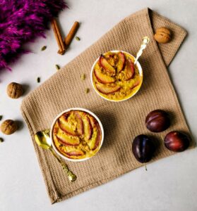 *Śliwki są high fodmap, więc jeśli jesteś na etapie eliminacji lub wiesz, że Ci szkodzą, użyj dozwolonych owoców: możesz spróbować z plastrami pomarańczy, winogronami, ananasem, mrożonymi truskawkami.