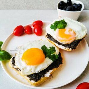 Jest to pasta kanapkowa na bazie czarnych oliwek, anchois, natki pietruszki i soku z cytryny. Na poniższym zdjęciu możecie zobaczyć propozycję podania, a zarazem mój ulubiony sposób na super kanapeczki.